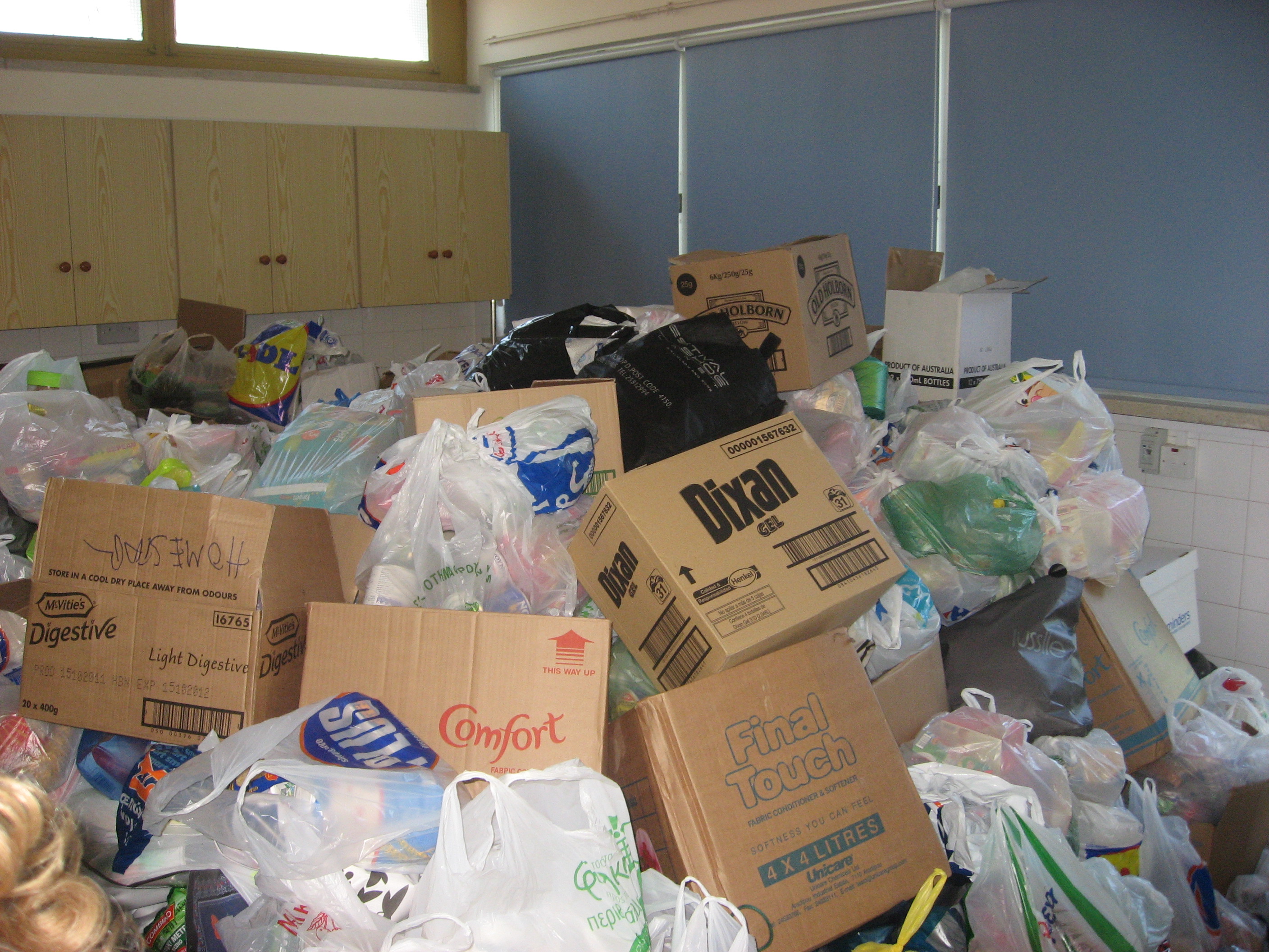 Σ’ αυτήν την προσπάθεια συμπαραστάτες ήταν η Τροχαία και το Νοσοκομείο Λεμεσού, τα Μ.Μ.Ε, χορηγοί και βέβαια όλος ο κόσμος που ανταποκρίθηκε αμέσως στο κάλεσμά μας και οι εθελοντές που διέθεσαν πάρα πολλές ώρες προκειμένου να ταξινομηθούν και τακτοποιηθούν όλα τα τρόφιμα.