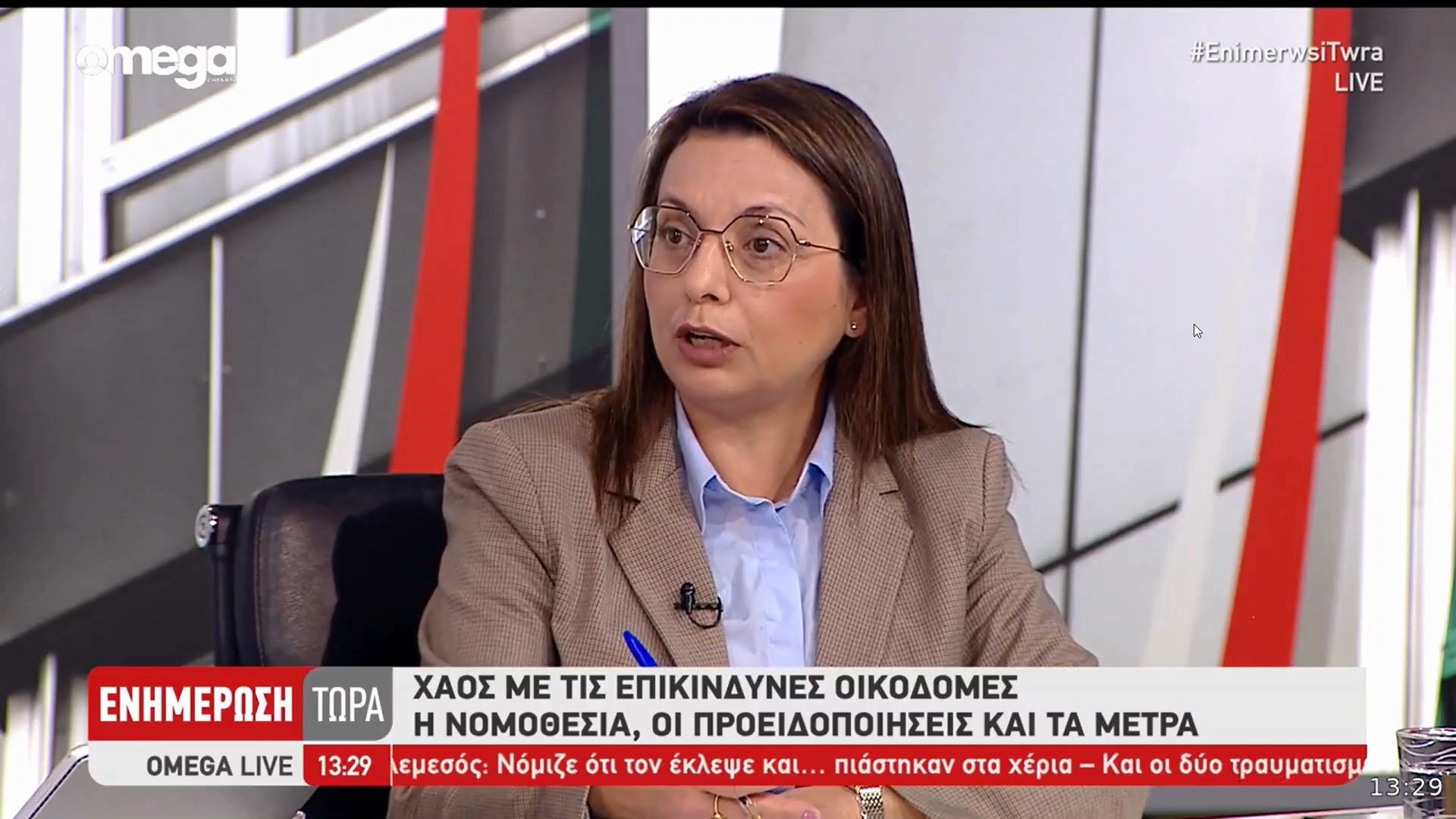 Στην εκπομπή «Ενημέρωση Τώρα» με την κα. Στέλλα Σάββα #omegachannel, συζητώντας φλέγοντα θέματα της επικαιρότητας, όπως το ζήτημα των επικίνδυνων οικοδομών, το στεγαστικό, καθώς και τα κενά και τις αδυναμίες που ανακύπτουν από την εφαρμογή της κείμενης νομοθεσίας, η οποία χρήζει άμεσης και ουσιαστικής βελτίωσης.